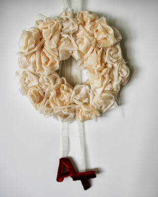УдалитьВенок чудесный! Кружевные розочки замечательные! И бархат сюда здорово сел! А буквы можно утяжелить, насыпав в них крупу, рис, зерно. С бусинами тоже идея отличная)