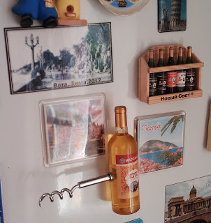 на верхней части холодильника магниты из разных городов Италии, Египет, подарок племяшки - Барселона, Питер, Архангельская область.. магнит с подводной лодкой из Северодвинска держит рецепт паштета от Белоники, любимая Одесса, Калининградская область, много магнитов из командировок привозит мне папа.